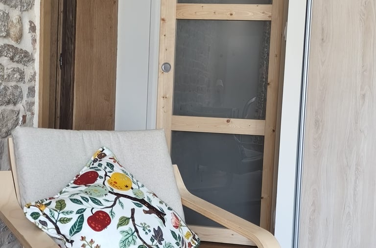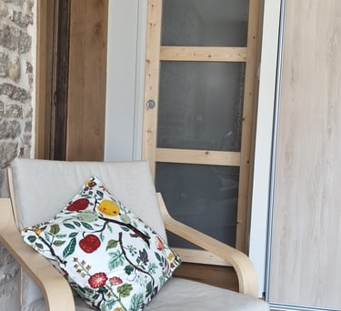 Cette chambre est située en rez-de-chaussée. Vous y accédez, si vous le souhaitez, sans passer par l'espace de vie ; vous êtes ainsi libre de vos mouvements et complètement indépendant.